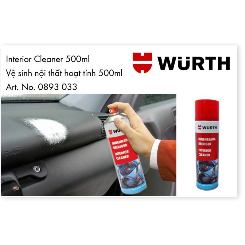 Giới thiệu [HCM] Dung Dịch Vệ Sinh Nội Thất Xe Hoạt Tính Wurth Interior Cleaner 500ml Tặng Khăn .Uy Tín - Chất Lượng - Giá Hủy Diệt
