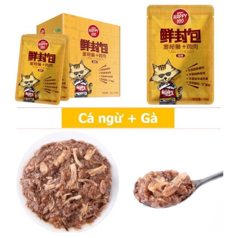 Sản phẩm: PATE cho mèo Wanpy Happy 100 Gói 70g - Bổ sung dinh dưỡng - Tốt cho tiêu hóa Tăng cường miễn dịch