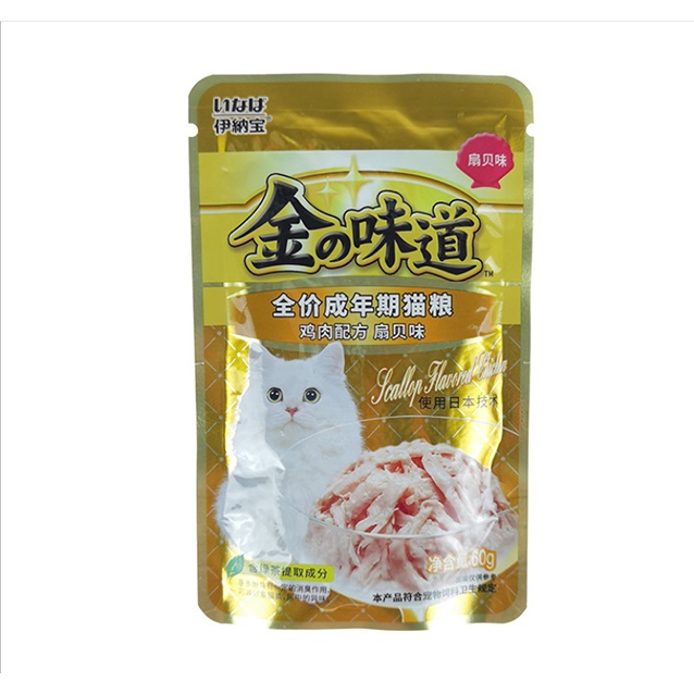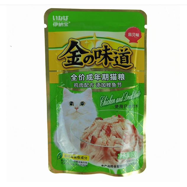 Sản phẩm gồm 5 hương vị - Vàng - Gà + Sò Điệp - Xanh Dương - Gà +Cá Ngừ Souden - Lam - Gà +Cá Bạc - Đỏ - Gà + Bò - Lá - Gà + Cá Ngừ Vằn Trọng lượng: 60g/gói