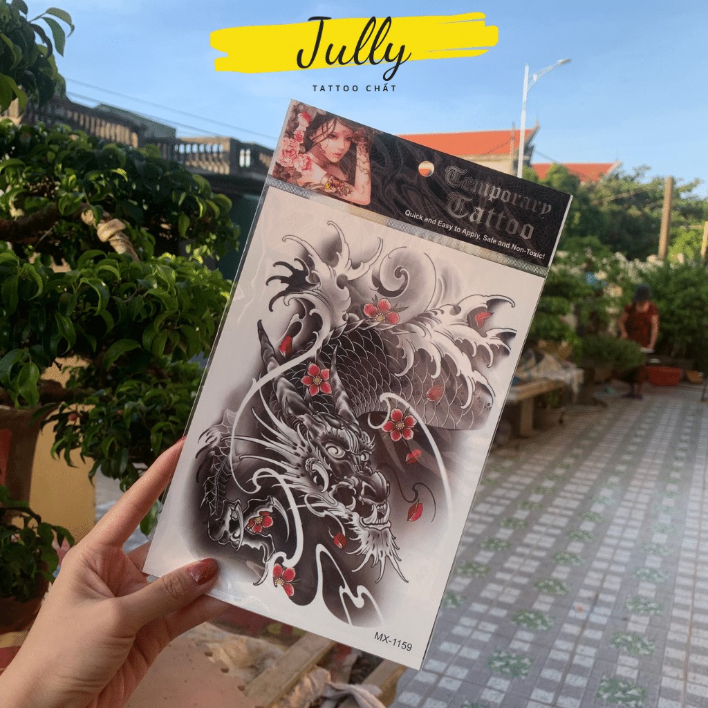 Giới thiệu Hình xăm dán, xăm tạm thời chống nước hình cá chép hóa rồng JULLY Tattoo chất, an toàn, bền đẹp, kích thước 15x21 cm