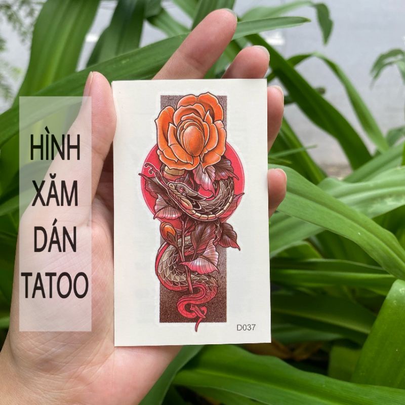 Hình xăm động vật rắn hoa d37 size nhỏ < 10x6cm. Tatoo dán tạm thời