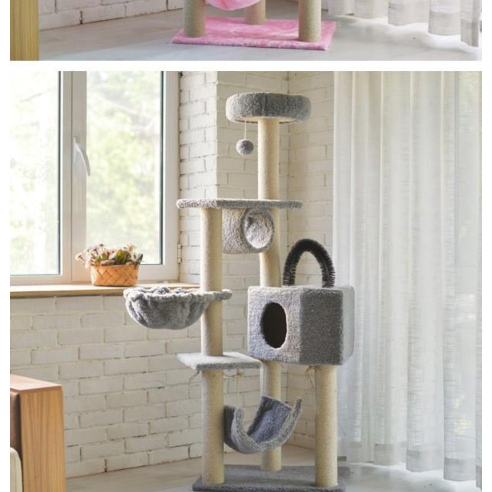Trụ mèo hiện đại, không chiếm nhiều diện tích, dễ dàng sử dụng, dễ tập làm quen với mọi độ tuổi của mèo. trụ gồm nhiều tầng mỗi tầng đều được bọc nỉ rất đẹp và mềm mại Các cột được bện thừng rất chắc chắn