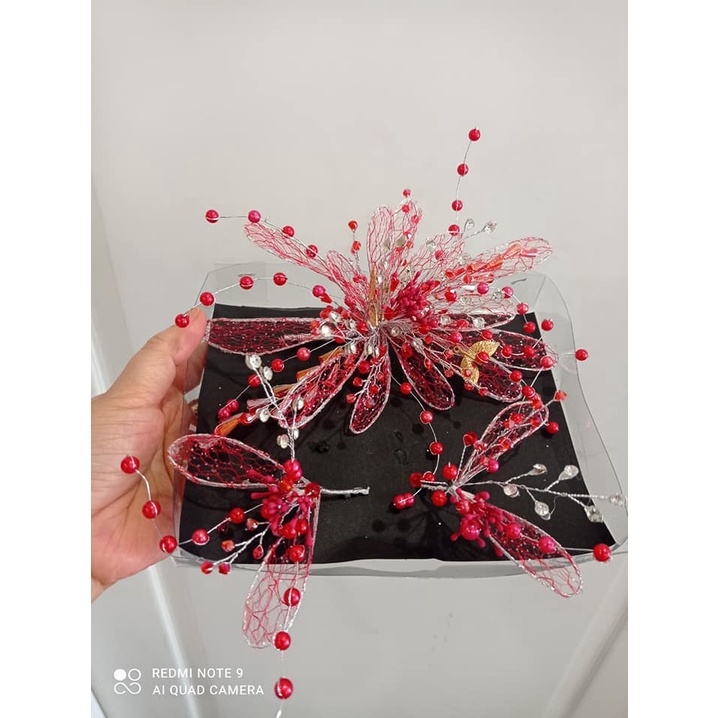 Phụ Kiện Thời Trang > Phụ kiện tóc > Cài tóc, vương miện cài tóc || Hoa ài cô dâu. Bộ 3 cài hoa lưới đỏ siêu xinh, giá 150k