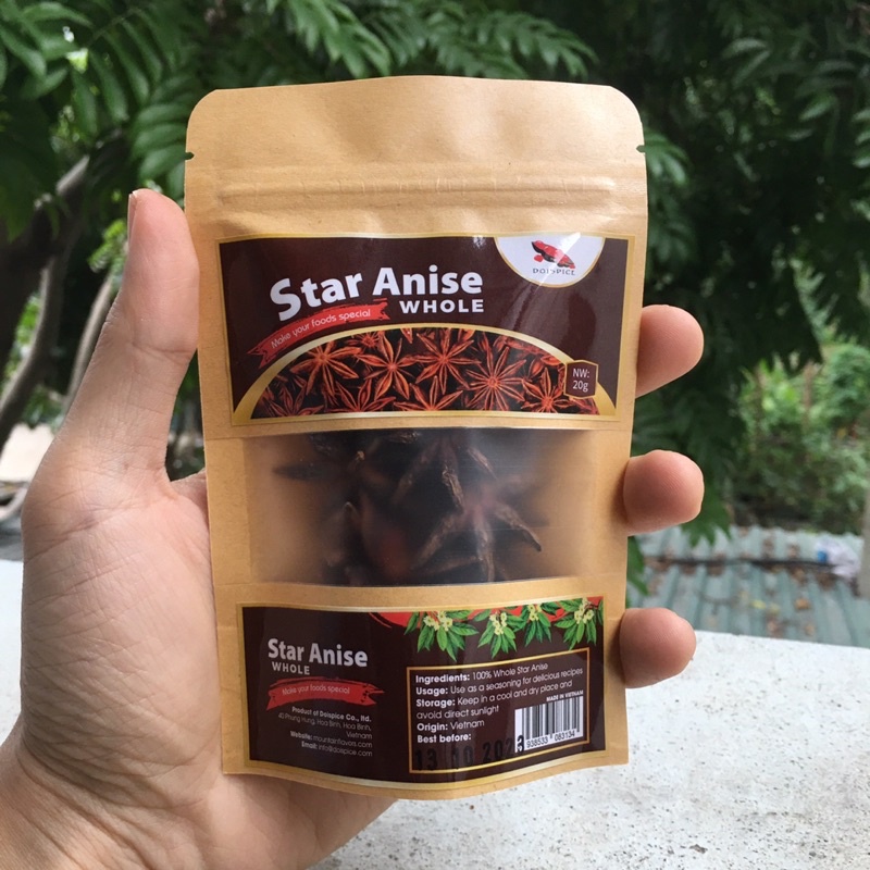 __Thành phần: 100% hoa Hồi __Đóng gói tại: Công ty TNHH Gia vị Doispice, 40 Phùng Hưng 4, Tp.Hòa Bình, T.Hòa Bình __Website: doispice.com __Facebook: facebook.com/doispice __Instagram: instagram.com/doispice *** Xuất xứ: Lạng sơn *** Hạn sử dụng: 2 năm kể từ ngày đóng gói. *** Chính sách giao hàng: người mua sẽ được hoàn lại tiền gấp đôi nếu như nhận sản phẩm chất lượng kém.
