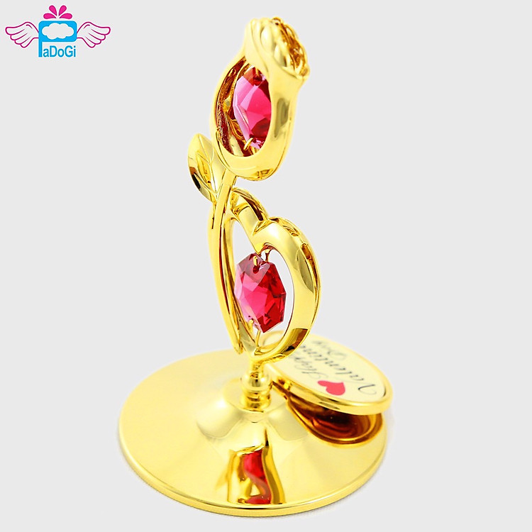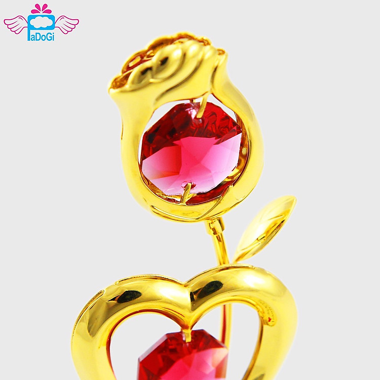 - Hoa Hồng Trái Tim Mạ Vàng Đính Pha Lê Swarovski được mạ vàng tinh xảo, kết hợp đường nét chế tác tinh tế thẩm mỹ và viên kim cương nhân tạo đỏ rực ở giữa, tạo nên một tác phẩm nghệ thuật trang trí lấp lánh sang trọng và giá trị.