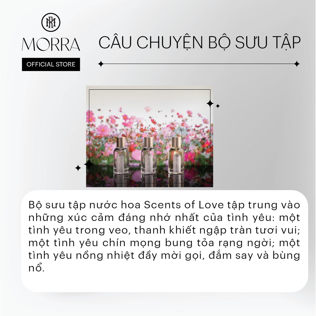 - “Mỗi mùi hương đều được Morra tính toán cẩn thận trong từng công thức, từng câu chuyện cảm hứng riêng. Mỗi chai nước hoa là một quá trình của sự chăm chút, tỉ mỉ và toàn tâm của nhân viên pha chế. Chúng tôi mong muốn mang lại những trải nghiệm tuyệt vời cho tất cả mọi người khi sử dụng nước hoa Morra.”