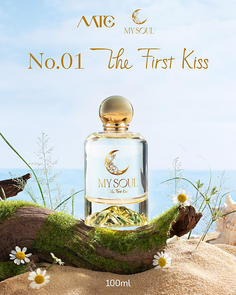 No.01 The First Kiss là dòng nước hoa đầu tiên mang Signature của Mỹ Tâm. Được lấy cảm hứng từ những cung bậc cảm xúc của nụ hôn đầu còn ngại ngùng, bỡ ngỡ. Hương thơm là sự kết hợp nồng nàn của hương cam nở rộ, cùng bạch đậu khấu, tiếp nối là sự ngọt ngào của hoa hồng tươi và nồng ấm từ hổ phách, chấm phá cuối của sự thanh mát là gỗ tuyết tùng và hương biển. Tất cả tạo nên một sự hòa quyện lướt qua từng cung bậc cảm xúc khác nhau, tựa như sự chớm nở của nụ hôn đầu ngày ấy, càng lưu luyến, càng vấn vương.