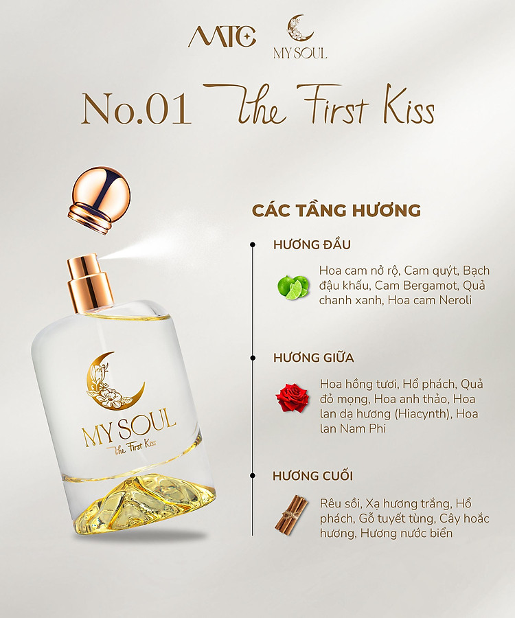 No.01 The First Kiss là dòng nước hoa đầu tiên của thương hiệu My Soul - được sáng lập bởi Mỹ Tâm.