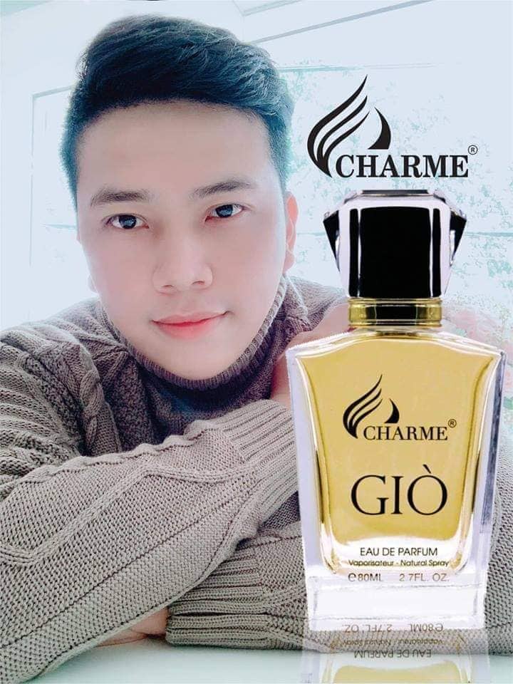 Nước hoa dành cho nam mang phong cách lịch lãm, sang trọng, mạnh mẽ và nam tính. Mùi hương được điều chế tại Pháp có sức cuốn hút và lưu hương rất lâu. Charme Giò là một hương thơm tươi mát, tinh khiết với sự kết hợp giữa hương cam quýt và hoa cỏ của nốt hương đầu tiên. Hương giữa là hoa cỏ vetiver, cùng với hương hoa đào thoang thoảng và oải hương dịu nhẹ, xen lẫn với hương nhài, dạ lan hương và cuối cùng ổn định tại nốt hương cuối với mùi hơn gỗ tuyết tùng và xạ hương trắng tạo nên sự thanh lịch, đẳng cấp sang trọng phong cách phương Tây.