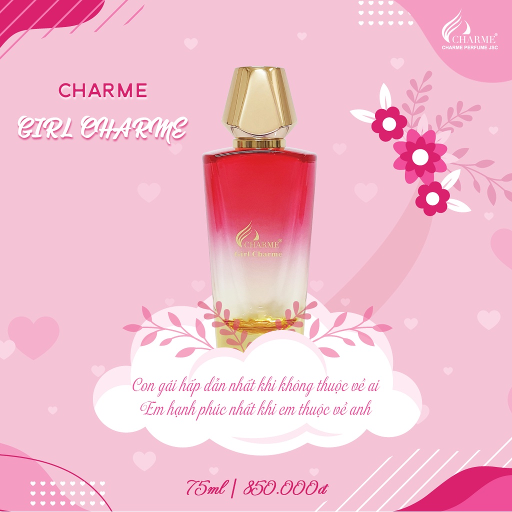 Girl Charme – Nàng thơ mới của thương hiệu Charme là dòng nước hoa mang phong cách trang nhã, tươi mới. Với các nốt hương hoa hồng nổi tiếng từ Đan Mạch và xứ Grasses danh tiếng của Pháp. Mẫu nước hoa như những cô nàng ngọt ngào quyến rũ, và vô cùng nữ tính nhưng cũng thể hiện đầy niềm tự tin của người con gái.