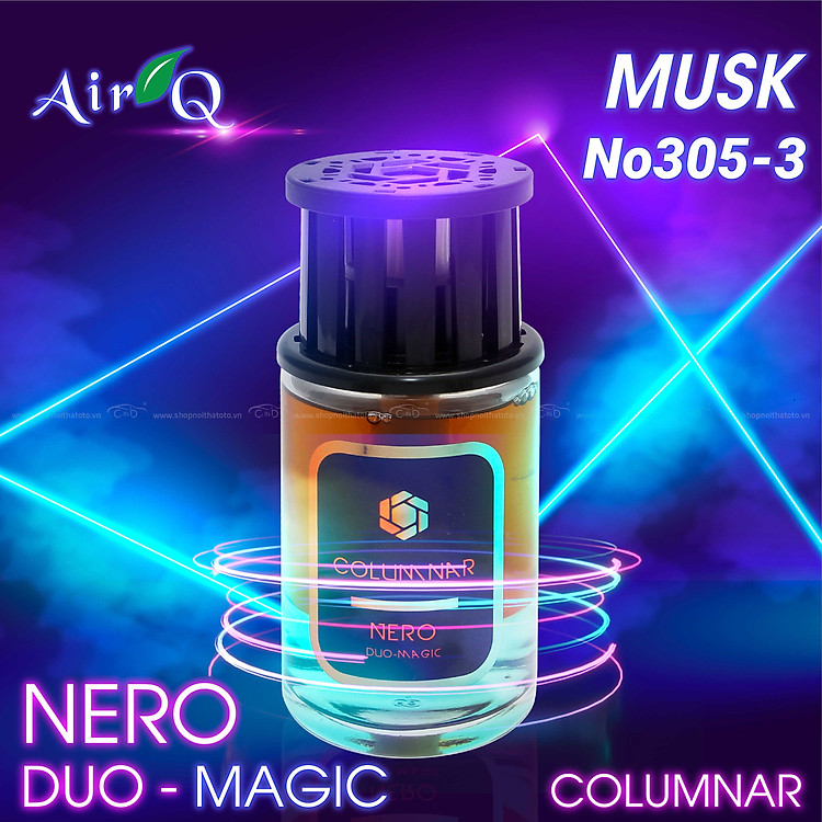 - Nước hoa ô tô AIR-Q NERO DUO-MAGIC COLUMNAR NO305-3 Musk 160ml được chế tạo với công thức đặc biệt của các chuyên gia hàng đầu tại Đài Loan, hệt như tên gọi - sản phẩm sẽ mang đến mùi hương quý phái, dịu nhẹ giúp bạn thư giãn thoải mái, tăng khả năng tập trung khi tham gia giao thông. Ngoài ra, thiết kế sản phẩm hai tầng tạo cảm giác sinh động trong không gian xe. Với thành phần hoàn toàn lành tính, sản phẩm đảm bảo không gây nên bất cứ tác dụng phụ cũng như ảnh hưởng gì đến sức khỏe của bạn khi sử dụng.