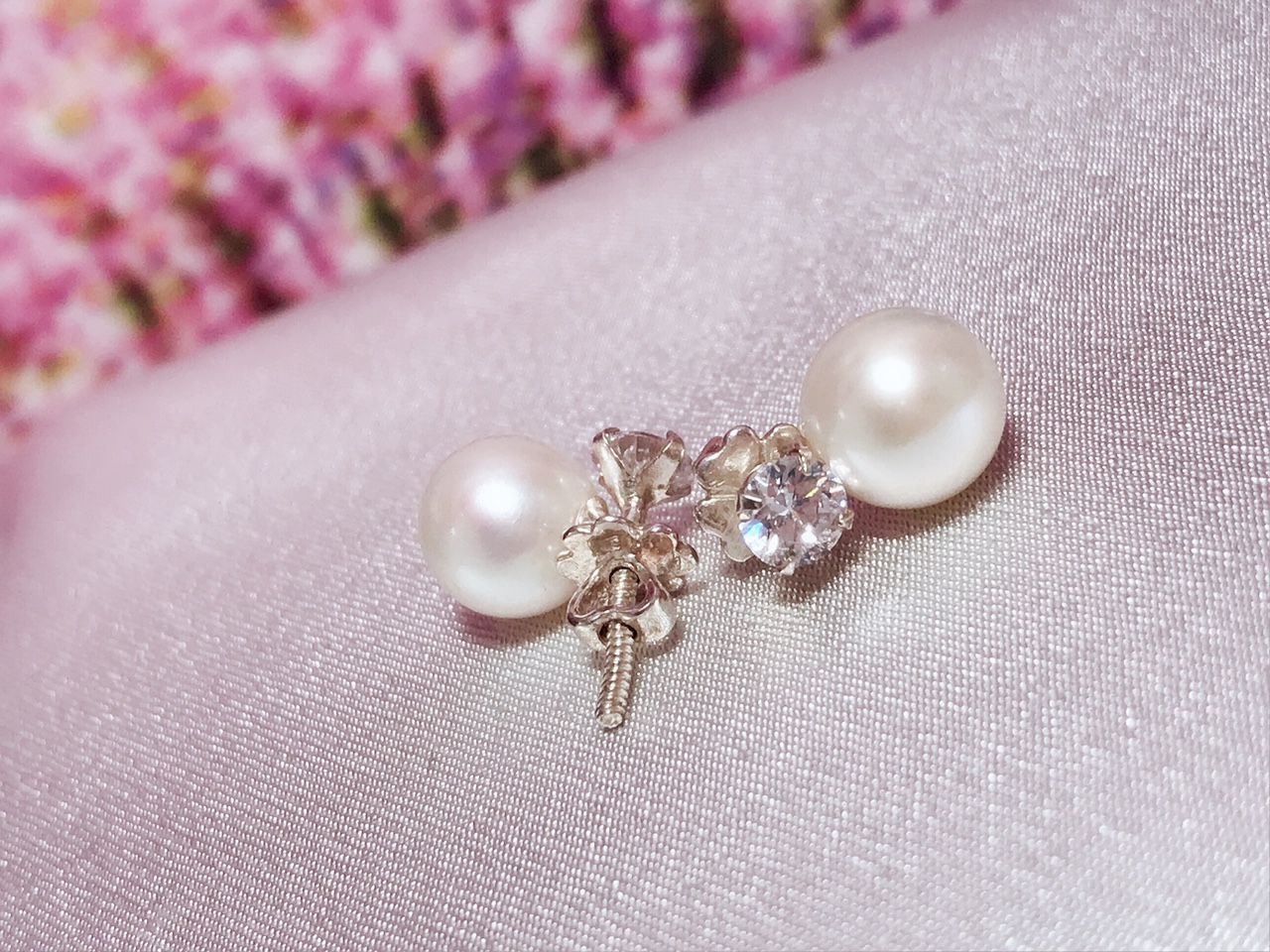 - Hoa tai ngọc trai nụ chế tác bạc cao cấp, mẫu đơn giản vô cùng xinh đẹp, chị em có thể đeo đi chơi, đi làm, đi tiệc đều hợp.