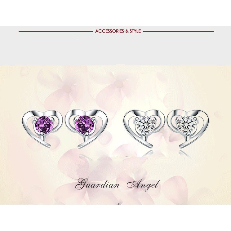 Giới thiệu Hoa tai trái tim hạt đá bạc ý 925, nhỏ gọn và xinh xắn HT28