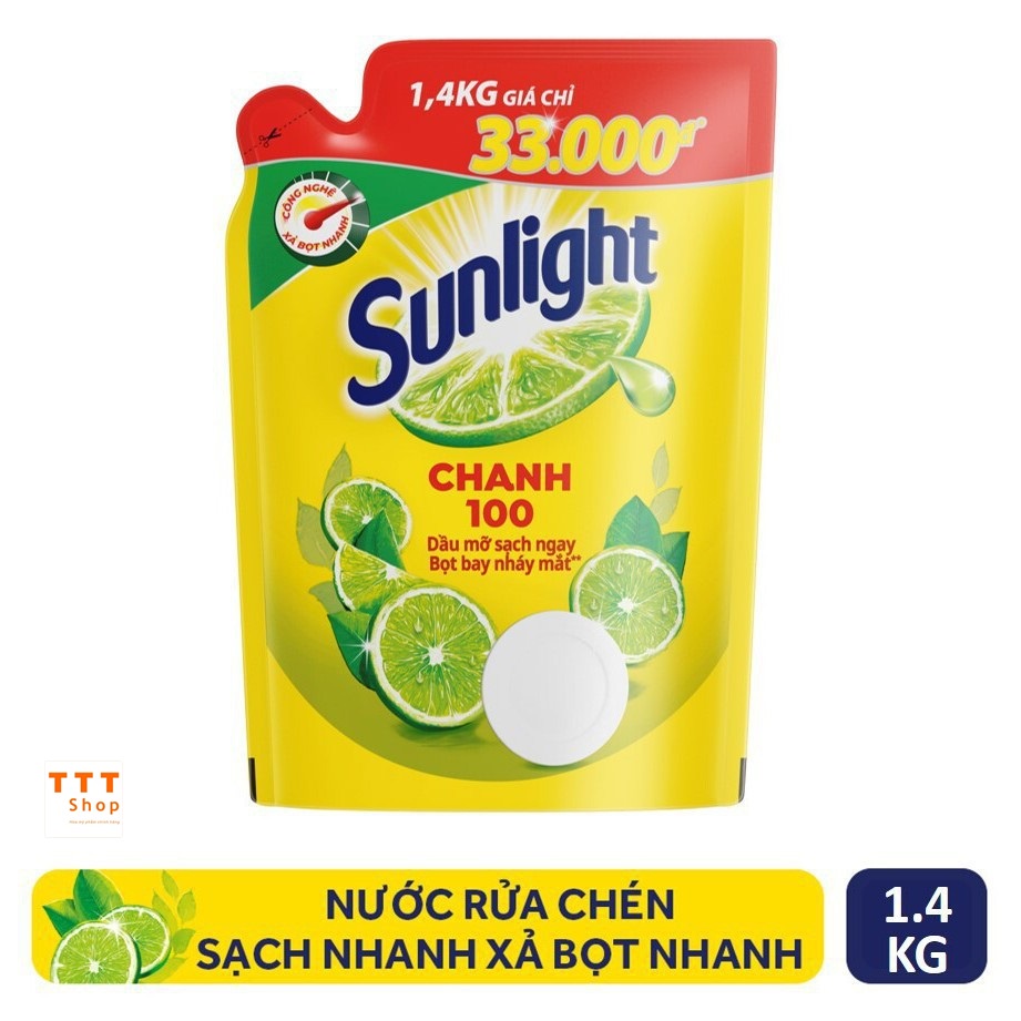 Giới thiệu [Hoả Tốc] Nước Rửa Chén SUNLIGHT Chanh túi 1.4 kg 1.4kg 1,4kg
