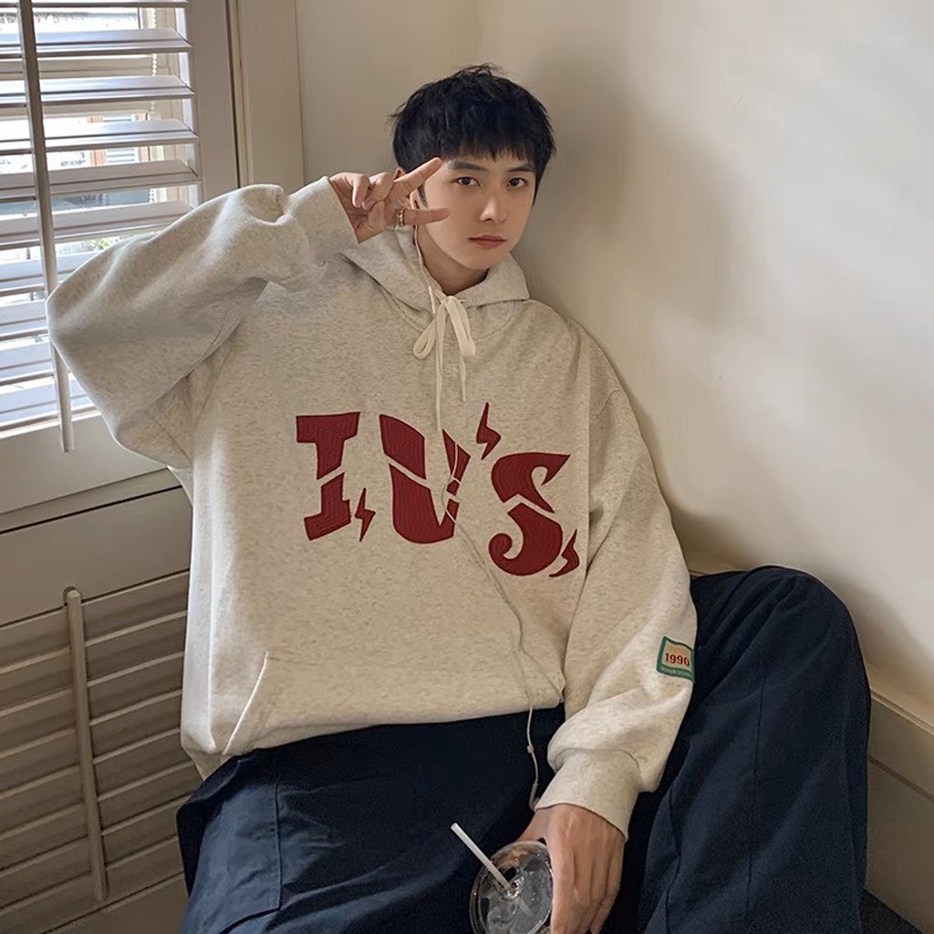 Hoodie họa tiết in IVS chất nỉ bông cao cấp dày dặn 2 màu đen, xám chuẩn from unisex nam nữ hình thật