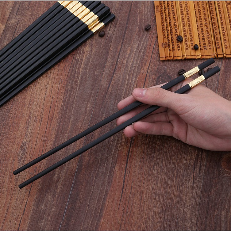 Giới thiệu Hộp 10 đôi đũa ăn hợp kim mạ vàng phong cách Hàn Quốc (Loại tốt)
