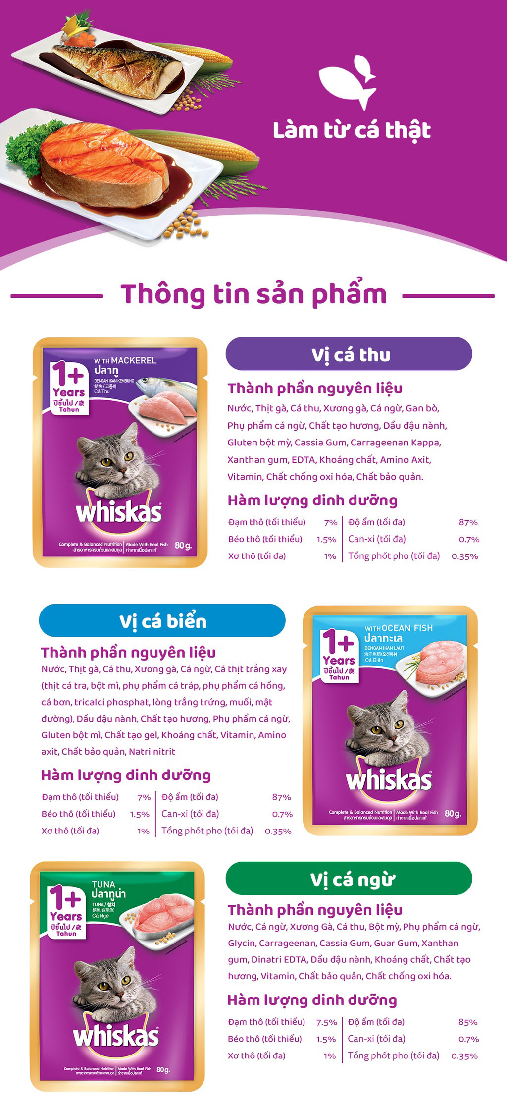 PATE WHISKAS DẠNG GÓI CHO MÈO VỊ CÁ THU 80G