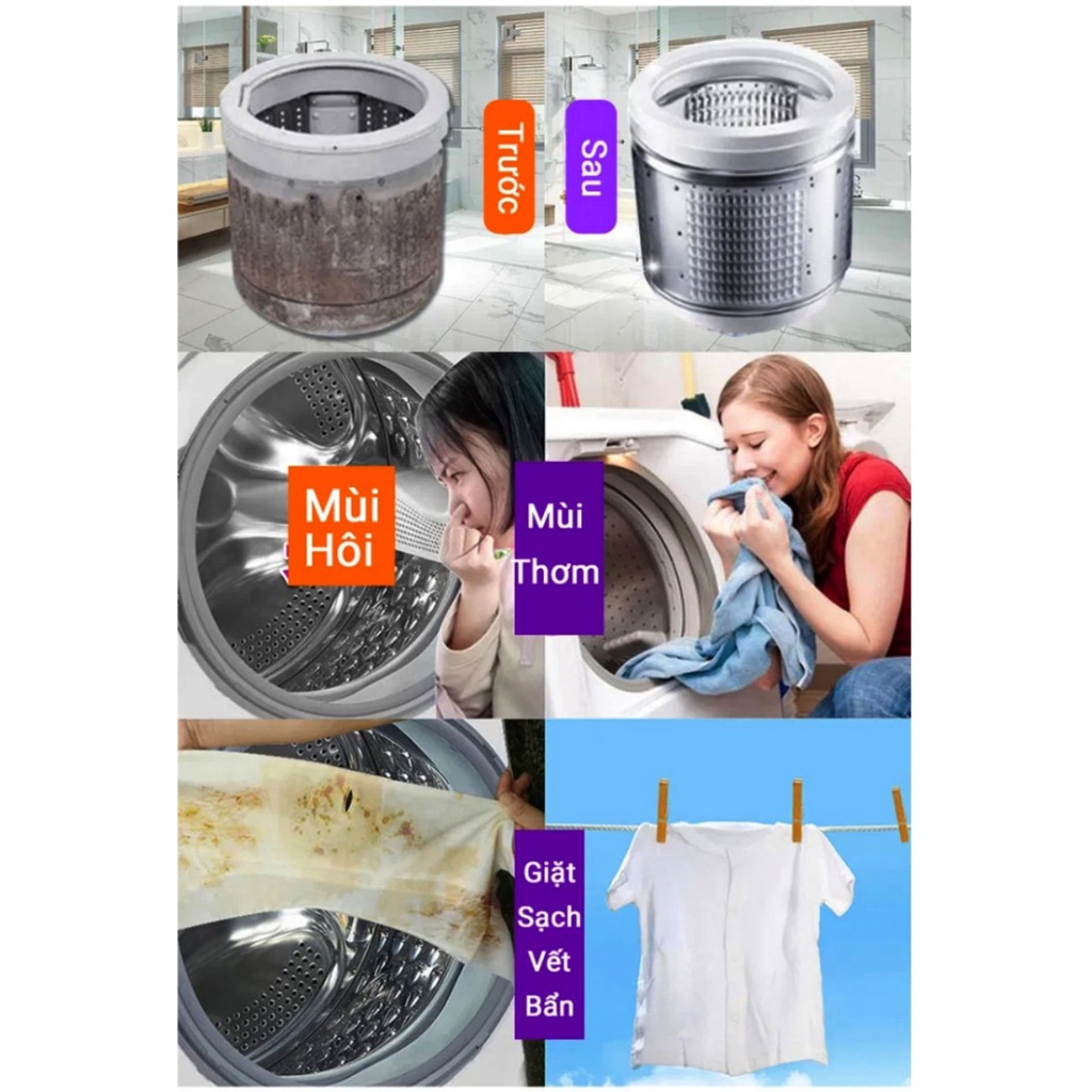 ƯU ĐIỂM VƯỢT TRỘI - Bạn có thể tự mình vệ sinh sạch sẽ, đơn giản mà không cần gọi tới công ty dịch vụ - Có thể giặt ngay sau khi vệ sinh, Không cần bảo dưỡng máy giặt khi sử dụng sản phẩm - Dùng được cho cả máy giặt lồng đứng và máy giặt lồng ngang - Tăng cường hoạt chất, giúp giặt sạch hơn - Công thức Oxy phân tử khử bẩn đặc biệt, hiệu quả diệt khuẩn đến 99.9%. Loại bỏ các vi khuẩn gây mùi hôi trong máy giặt và đường ống thoát nước - Cải thiện chất lượng nước trong lồng giặt, giúp tác động giặt lên quần áo hiệu quả hơn - Giúp tăng tuổi thọ cho thiết bị máy giặt