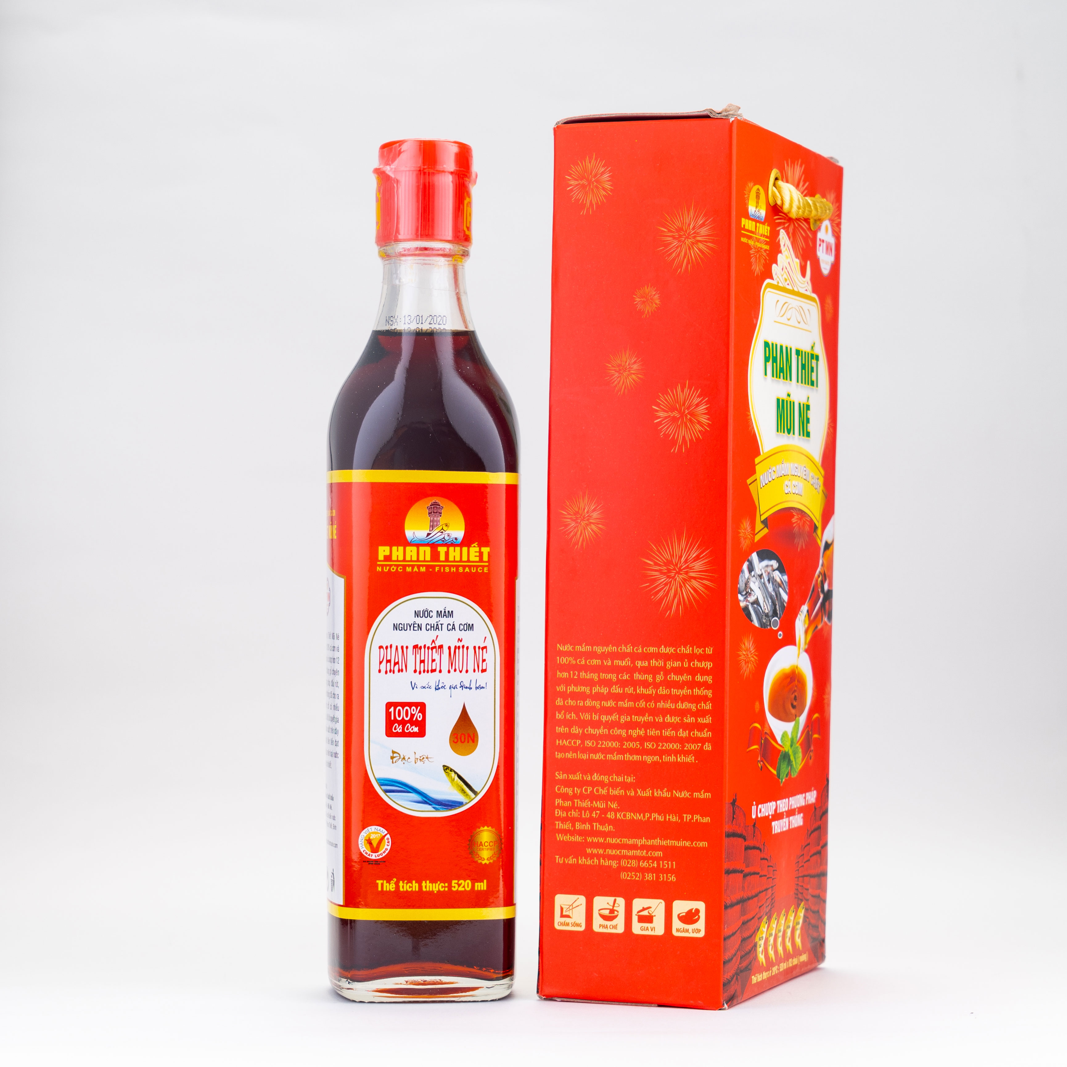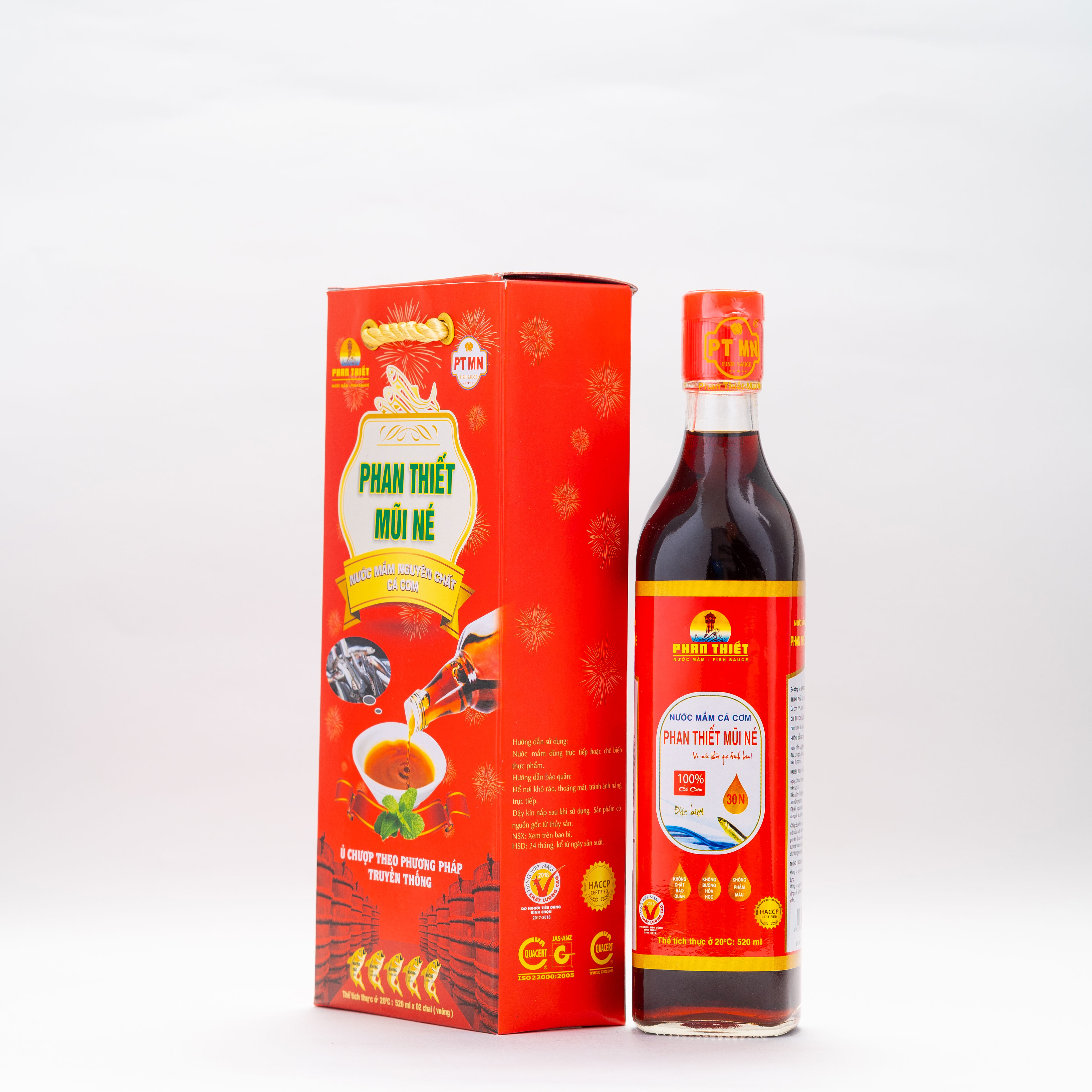 Nước mắm Phan Thiết Mũi Né được chắt lọc từ 100% cá cơm tươi và muối. Với bí quyết gia truyền, được ủ chượp theo phương pháp truyền thống tự nhiên và sản xuất trên dây chuyền công nghệ tiên tiến quy trình khép kín, đạt tiêu chuẩn HACCP. Từ đó đã tạo ra dòng nước mắm nguyên chất cá cơm mang hương vị ĐẬM ĐÀ THƠM NGON - TINH KHIẾT BỔ DƯỠNG đạt chất lượng đúng theo tiêu chuẩn TCVN 5107 : 2003.
