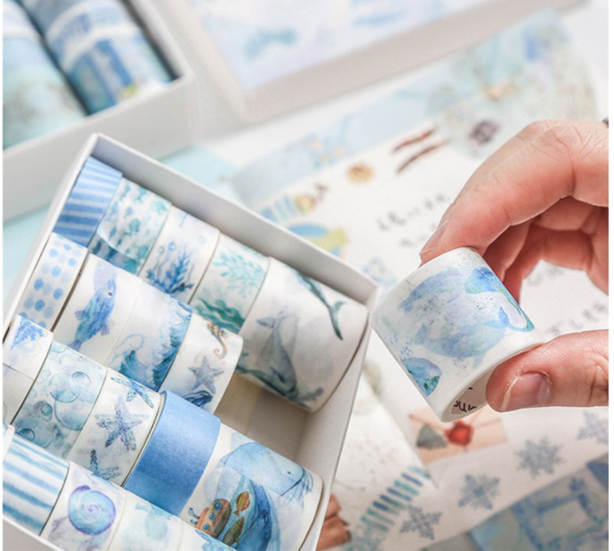 Hộp 20 Cuộn Băng Keo Washi Tape - Mẫu Xinh Xắn Cố Điển Dùng Để Trang Trí - Màu Xanh Dương