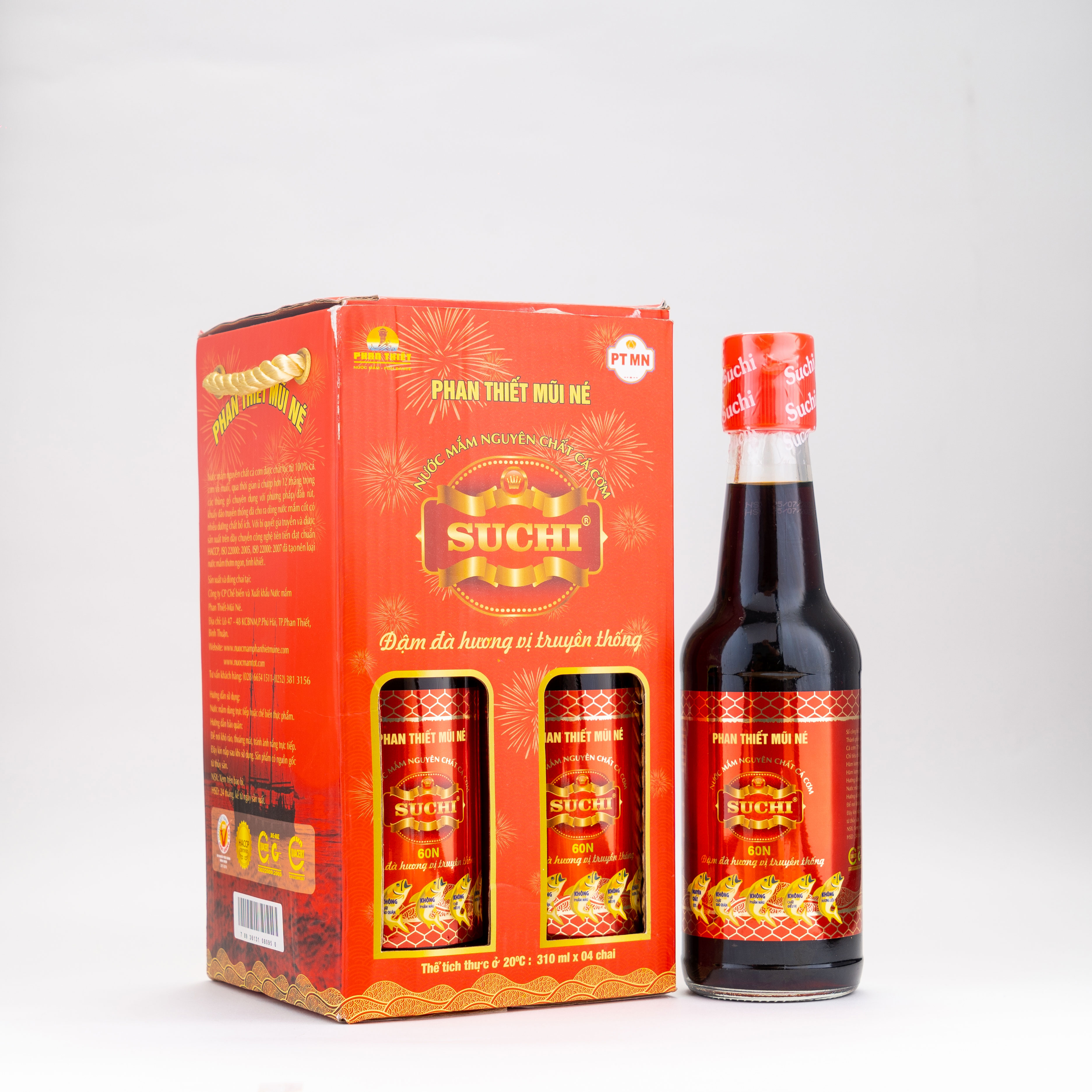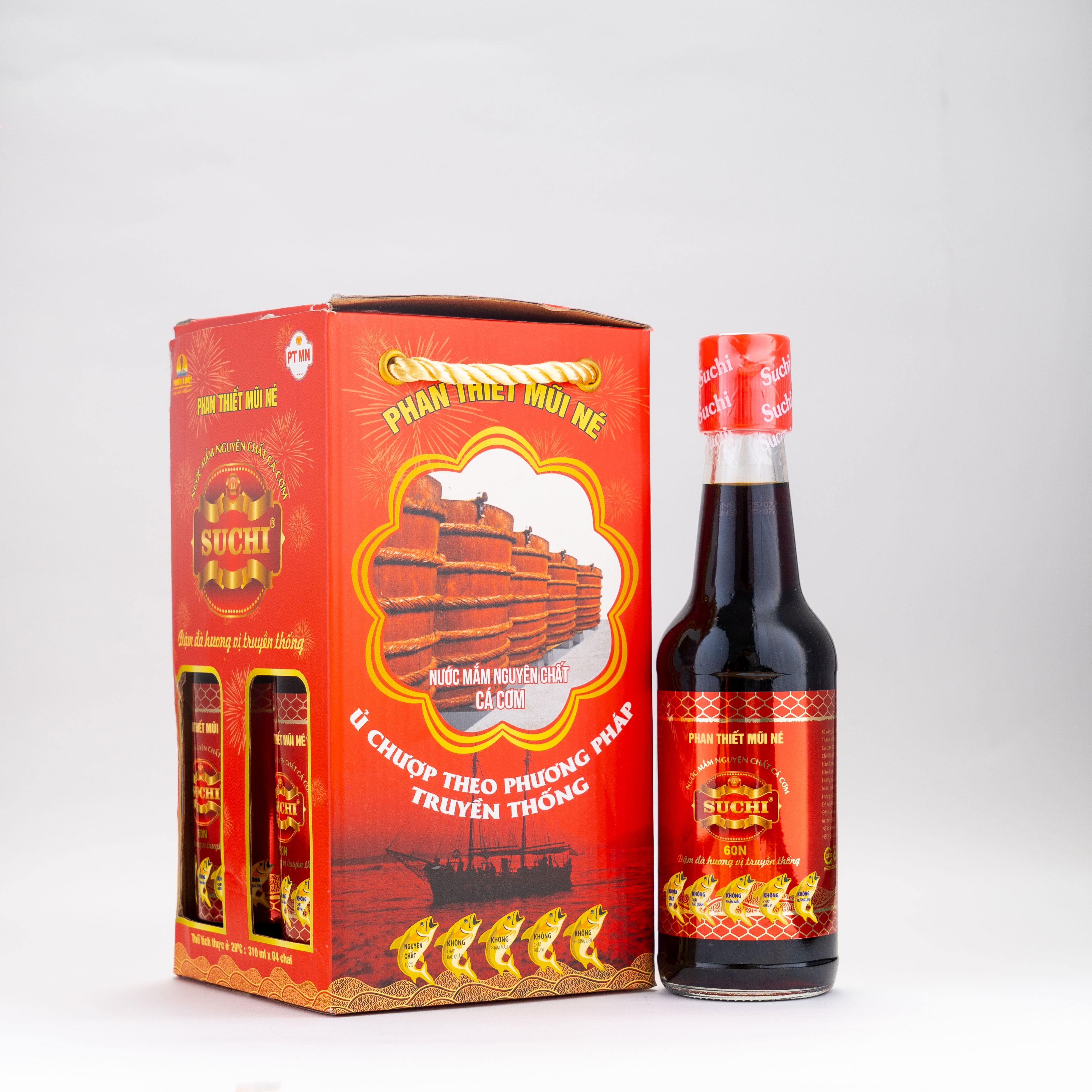 Nước mắm Phan Thiết Mũi Né được chắt lọc từ 100% cá cơm tươi và muối. Với bí quyết gia truyền, được ủ chượp theo phương pháp truyền thống tự nhiên và sản xuất trên dây chuyền công nghệ tiên tiến quy trình khép kín, đạt tiêu chuẩn HACCP. Từ đó đã tạo ra dòng nước mắm nguyên chất cá cơm mang hương vị ĐẬM ĐÀ THƠM NGON - TINH KHIẾT BỔ DƯỠNG đạt chất lượng đúng theo tiêu chuẩn TCVN 5107 : 2003.