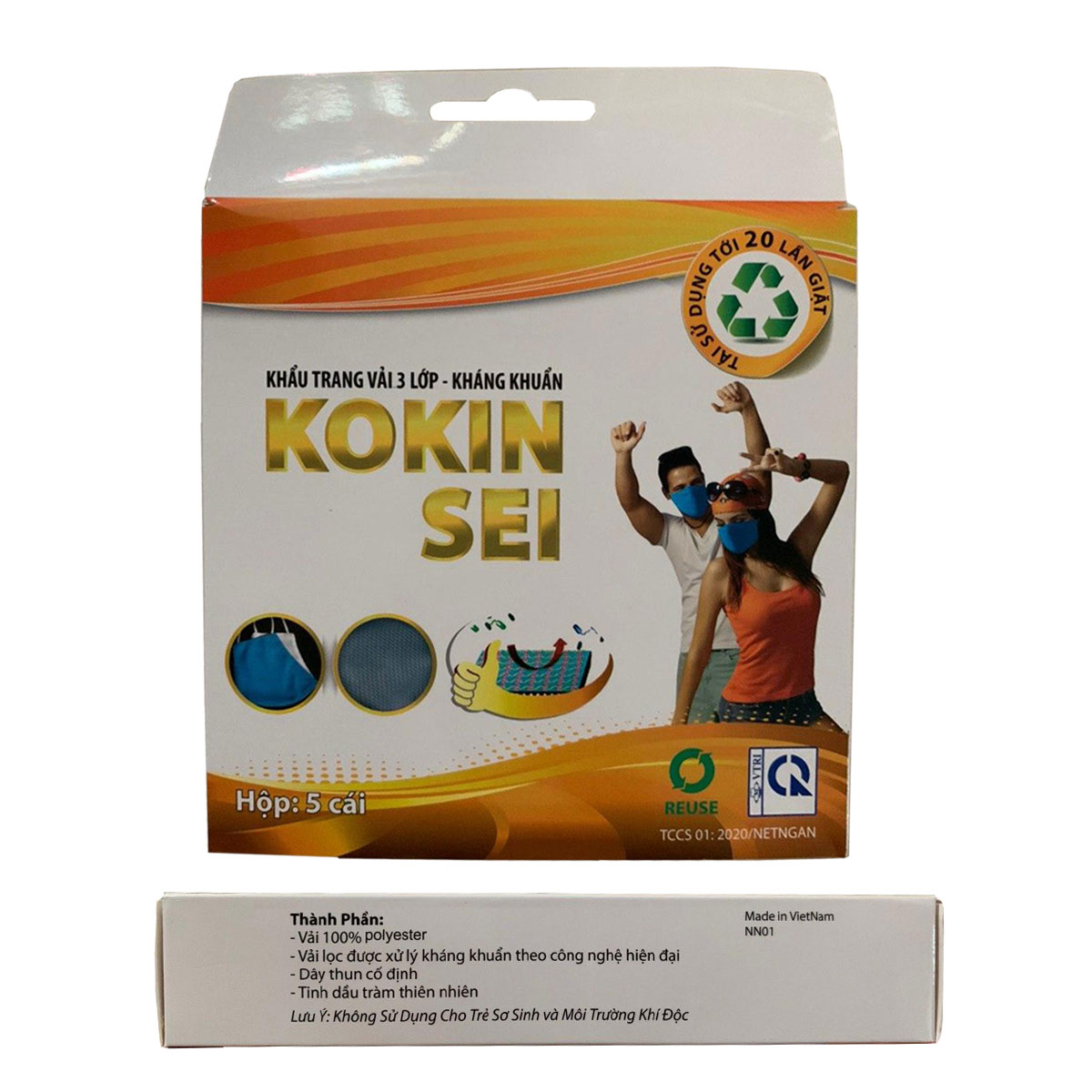 Combo 5 Chiếc Khẩu Trang Vải 3 Lớp Kháng Khuẩn KOKIN SEI, An Toàn, Tiện Dụng, Chống Bụi, Ô Nhiễm, Virus - Hàng Chính Hãng là sản phẩm mới thiết thực hàng ngày cho mọi người trong cuộc sống. Khẩu trang may bằng vải kháng khuẩn sẽ tốt hơn những loại khẩu trang vải thông thường khác vì có thêm tính năng diệt được các vi khuẩn, virus bám trên bề mặt của vải.