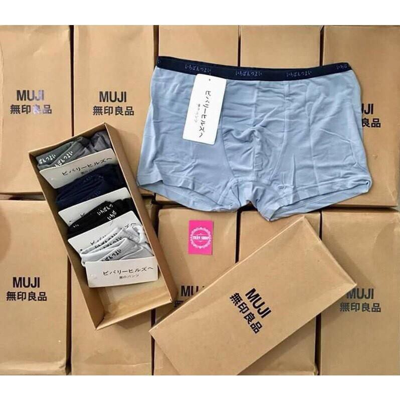 1 set gồm 1 hộp 5 quần sịp đùi Muji xuất Nhật Hàng xuất Nhật chuẩn code, chất mặc thích luôn đó ạ (loại hịn là chữ tiếng nhật chạy quanh cạp quần) Ngó qua chất liệu để biết tại sao quần lại được nhiều các anh thích như thế nha: -- Chất liệu 100% vải bông mềm (100% cotton hữu cơ) co giãn 4 chiều, mỏng và thoáng mát -- Màu sắc : 5 màu như hình phù hợp với mọi lứa tuổi -- Hàng sẵn SLL, nhận sỉ và CTV chiết khấu cao Size L: 50 đến 60kg Size XL: 60 đến 70kg Size XXL : 70 đến 80kg #quansipnam #dolotnam #quanlot #sip #sipnam #muji #quanlotnam #sipdui #cotton #phukienthoitrang #xuatnhat #giare