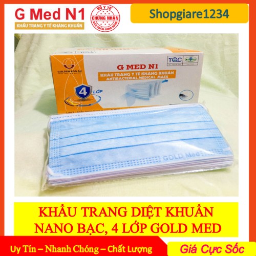 Giới thiệu Hộp 50 cái khẩu trang y tế NANO BẠC, 4 Lớp Gold Med - Hàng Chuẩn Công Ty, Chất Lượng Cao Cấp