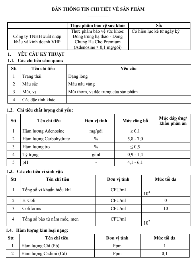 Thành phần sản phẩm Tinh chất Đông trùng hạ thảo Daedong Korea