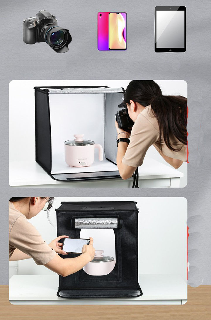 Với loại hộp chụp có đèn led, chúng ta có thể quay sp bằng điện thoại cũng rất chất lượng, và đẹp.
