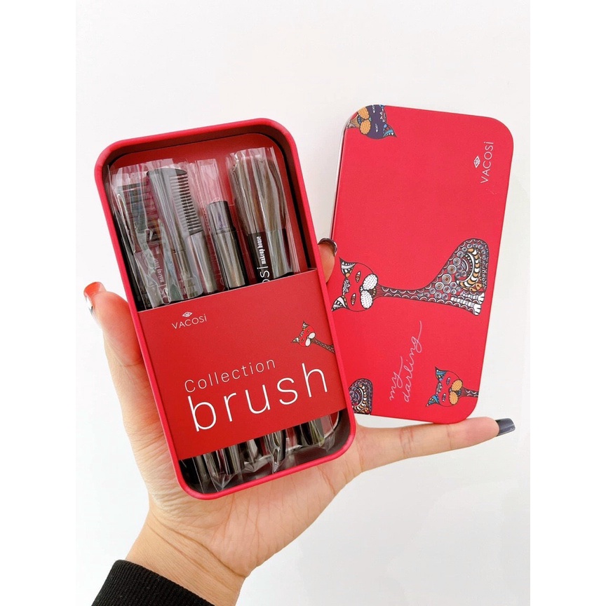 Giới thiệu Hộp cọ trang điểm chuyên dụng dạng du lịch VACOSI MY DARLING 8 CÂY - BC24 - màu đỏ