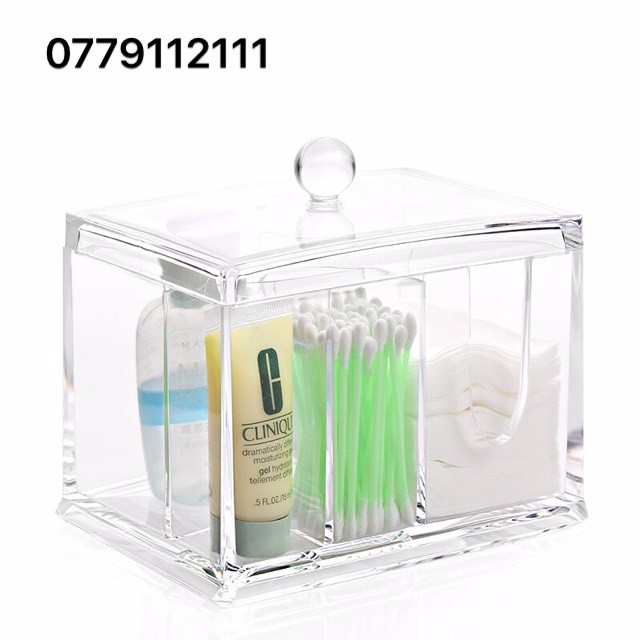 Hộp đựng bông tăm, son, bông tẩy trang với chất liệu Acrylic cao cấp dày dặn trong suốt, rất hịn nha các ce.