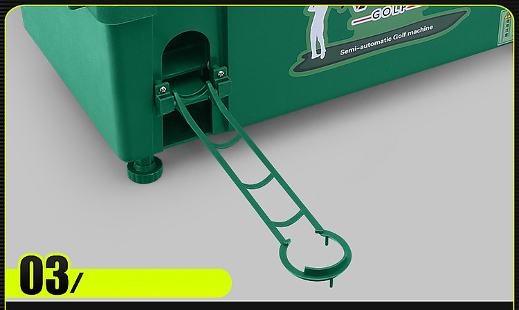 - Thiết kế: Gồm 1 khay đựng bóng golf, 9 lỗ đựng gậy, 1 giá đỡ điện thoại và 1 thanh trả bóng tự động.