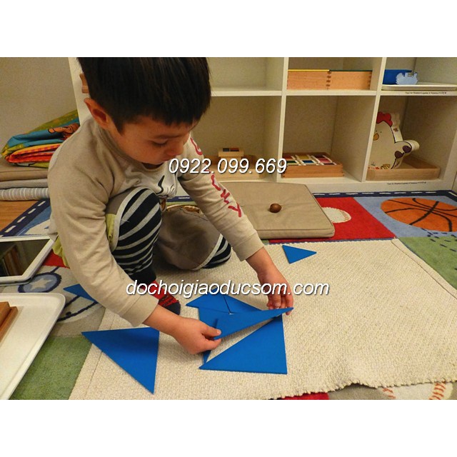Hộp các tam giác màu xanh - Giáo cụ Montessori