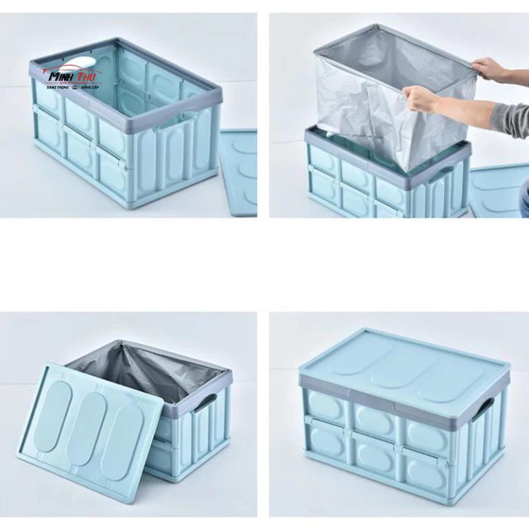 Thông số kỹ thuật: Chất liệu: Nhựa PP Màu sắc: Xanh dương – Đen - Xanh lá - Nâu – Kích thước: Loại 30lít : 23cm x 43cm x 30 cm Gấp gọn : 5,2cm x 43cm x 30 cm Loại 55lít : 29cm x 53cm x 35 cm Gấp gọn : 6,2cm x 53cm x 35 cm