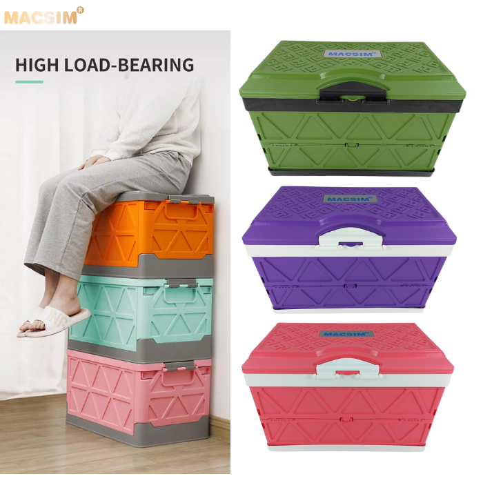 Hộp đựng đồ xếp gọn kích thước 50cm x 32cm x 31cm - hộp đựng đồ trong cốp ô tô nhãn hiệu Macsim chất liệu PP cao cấp màu tím pha trắng