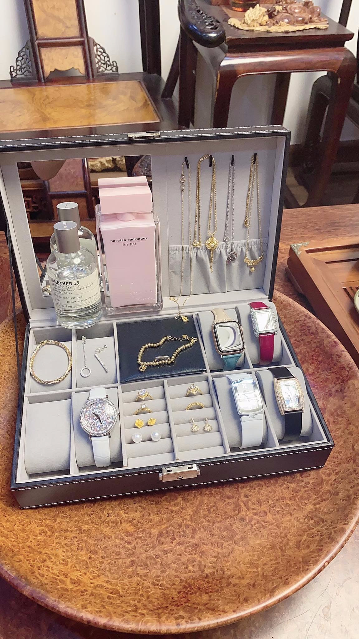 Bạn là người kín đáo đến ngay cả "gia tài" phụ kiện trang sức bạn cũng không muốn mọi người nhìn thấy, bởi vậy bạn đang tìm kiếm hộp đựng đồng hồ trang sức nắp kín, có thể treo bông tai, vòng, dây chuyể sẽ có nhiều gợi ý cho mẫu hộp bạn cần tuy nhiên sản phẩm vừa vặn 1 tầng lại có khóa chìa đựng được thêm vài chiếc đồng hồ, một số trang sức thì mẫu hộp mã S808 thỏa mọi nhu cầu bạn đang cần. Mẫu hộp được nhiều ace tin dùng.