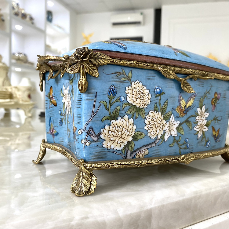 - Hộp đựng khăn giấy hoa văn cổ điển được trang trí hoa văn tinh xảo mang tính nghệ thuật cao mang phong cách cổ điển Châu Âu.