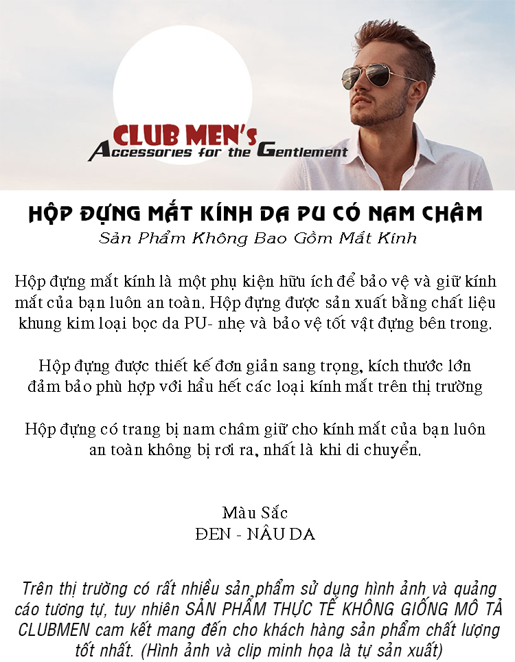 Kích thước | Hộp đựng mắt kính là một phụ kiện hữu ích để bảo vệ và giữ kính mắt của bạn luôn an toàn.Hộp đựng được sản xuất bằng khung kim loại bọc da PU ( PU Leather) - nhẹ và bảo vệ tốt mắt kính của bạn,nó có thiết kế cổ điển cùng kích thước lớn để đảm bảo phù hợp với hầu hết các loại kính có trên thị trường,ngoài ra hộp còn được trang bị nam châm giữ cho kính của bạn luôn an toàn không bị rơi ra.Có 2 màu để lựa chọn gồm : ĐEN - NÂU DA#hopkinh #hopdungkinh #hopkinhmat #hopdadungkinh #hopdakinhmat |
