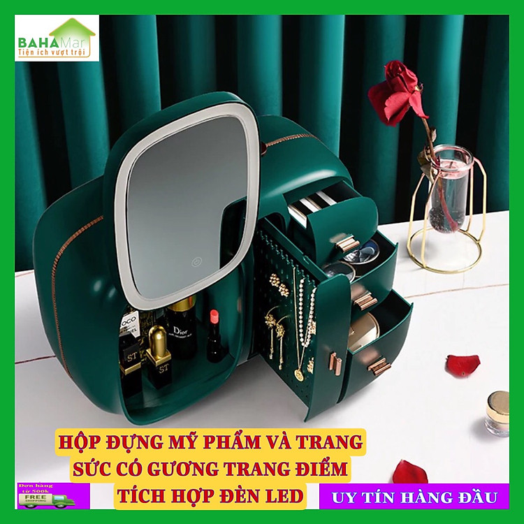 HỘP ĐỰNG MỸ PHẨM VÀ TRANG SỨC CÓ GƯƠNG TRANG ĐIỂM TÍCH HỢP ĐÈN LED Tính năng:1. Thiết kế tay cầm dễ dàng mang đi di chuyển, chống bám bụi và chống thấm nước,2. Có gương trang điểm riêng biệt và dễ t...