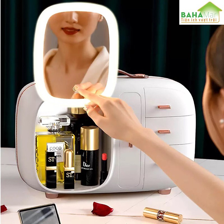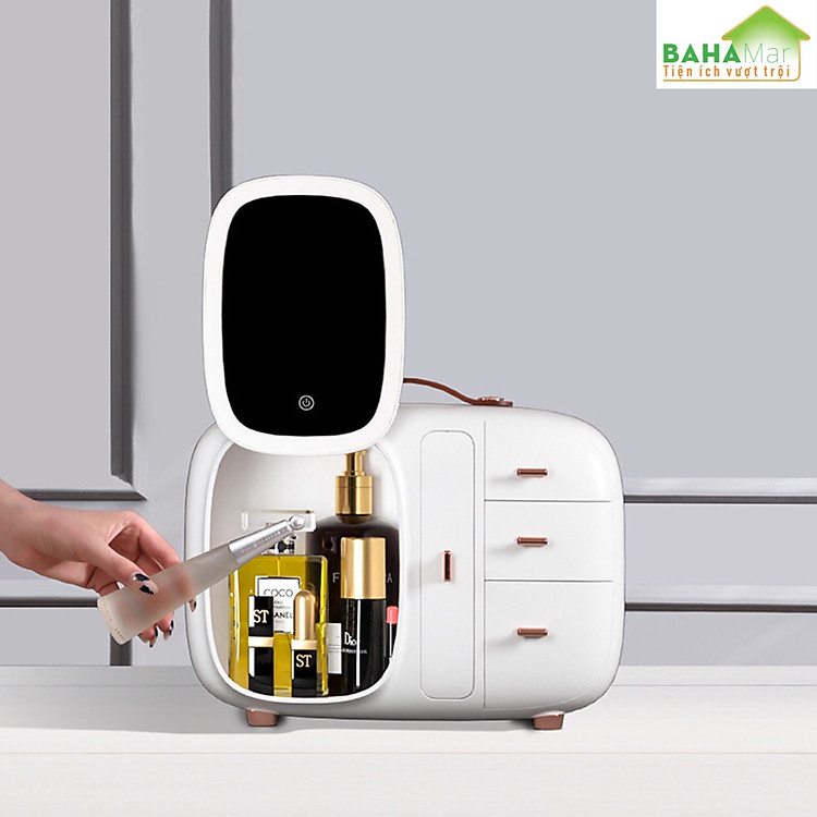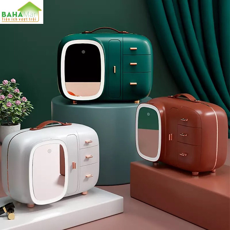 Giới thiệu HỘP ĐỰNG MỸ PHẨM VÀ TRANG SỨC CÓ GƯƠNG TRANG ĐIỂM TÍCH HỢP ĐÈN LED "BAHAMAR" Thiết kế tay cầm dễ dàng mang đi di chuyển, chống bám bụi và chống thấm nước. Có gương trang điểm riêng biệt và dễ thương.