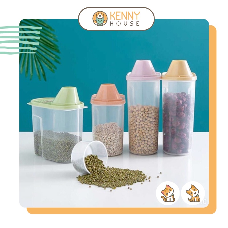 Hộp đựng thức ăn hạt trong suốt mini 1.9L kèm cốc đong dành cho chó mèo & Sen