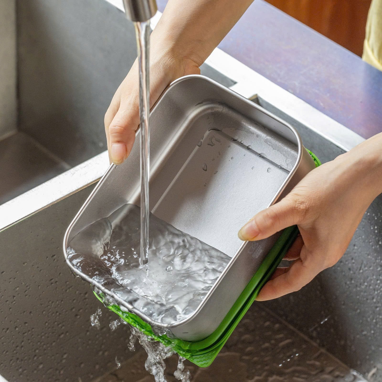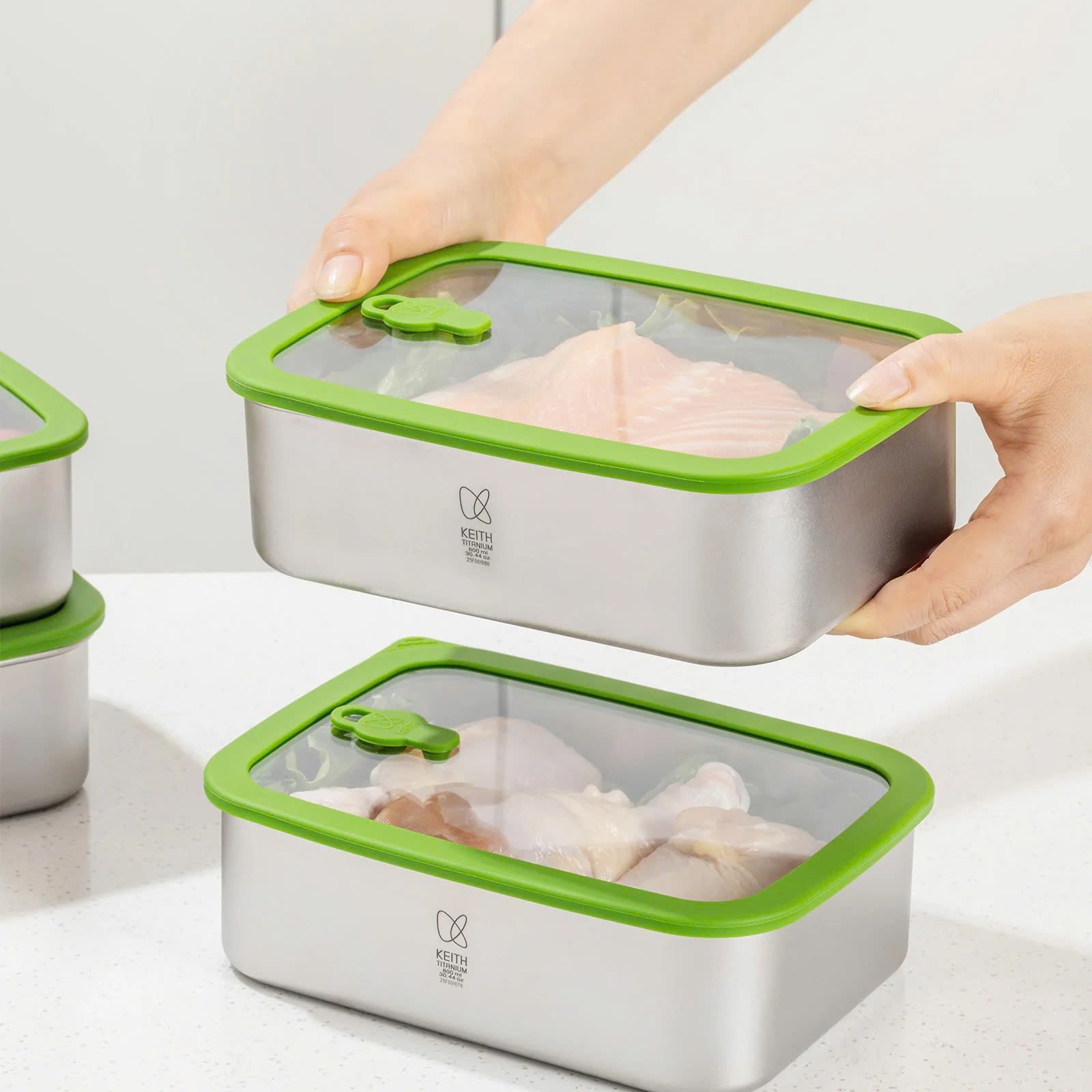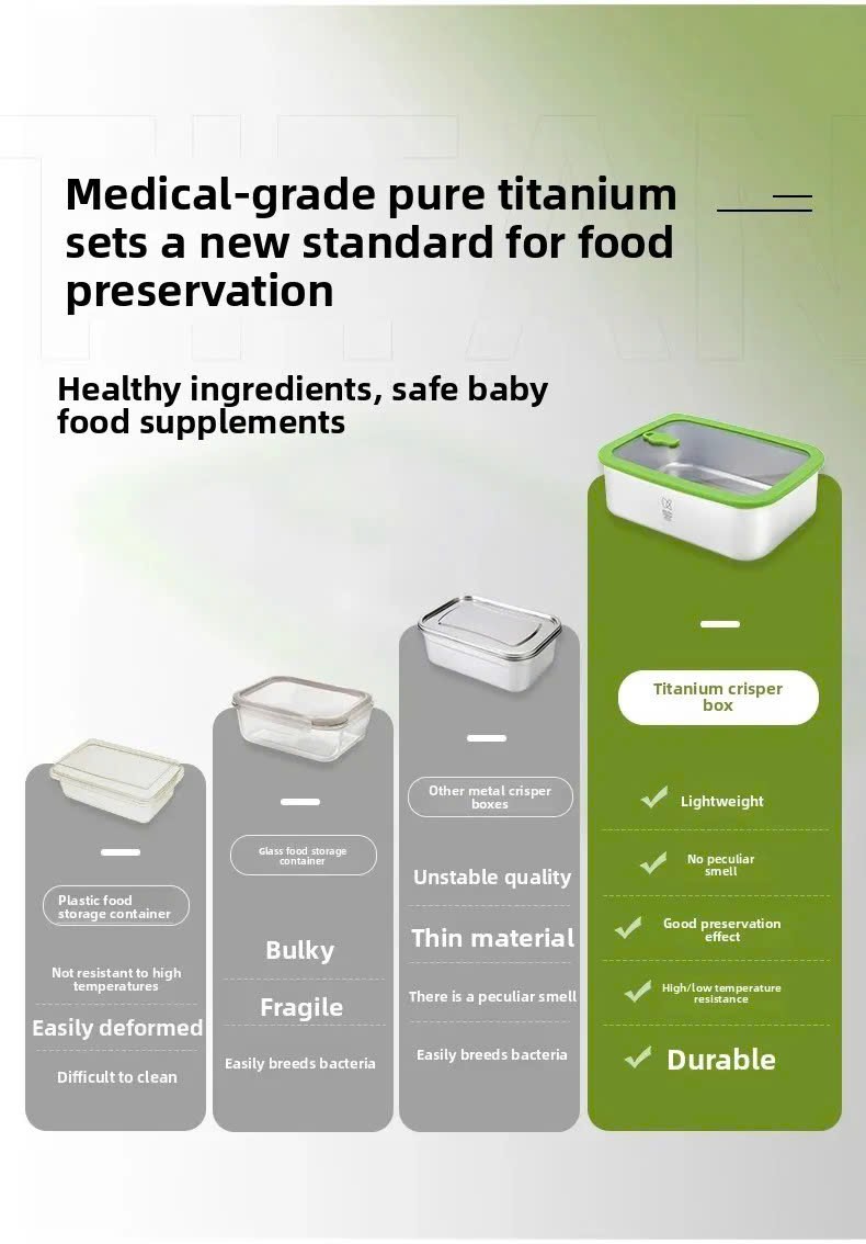 3. Thân hộp bằng titan nguyên chất, nắp kính cường lực, nắp silicon an toàn thực phẩm.
