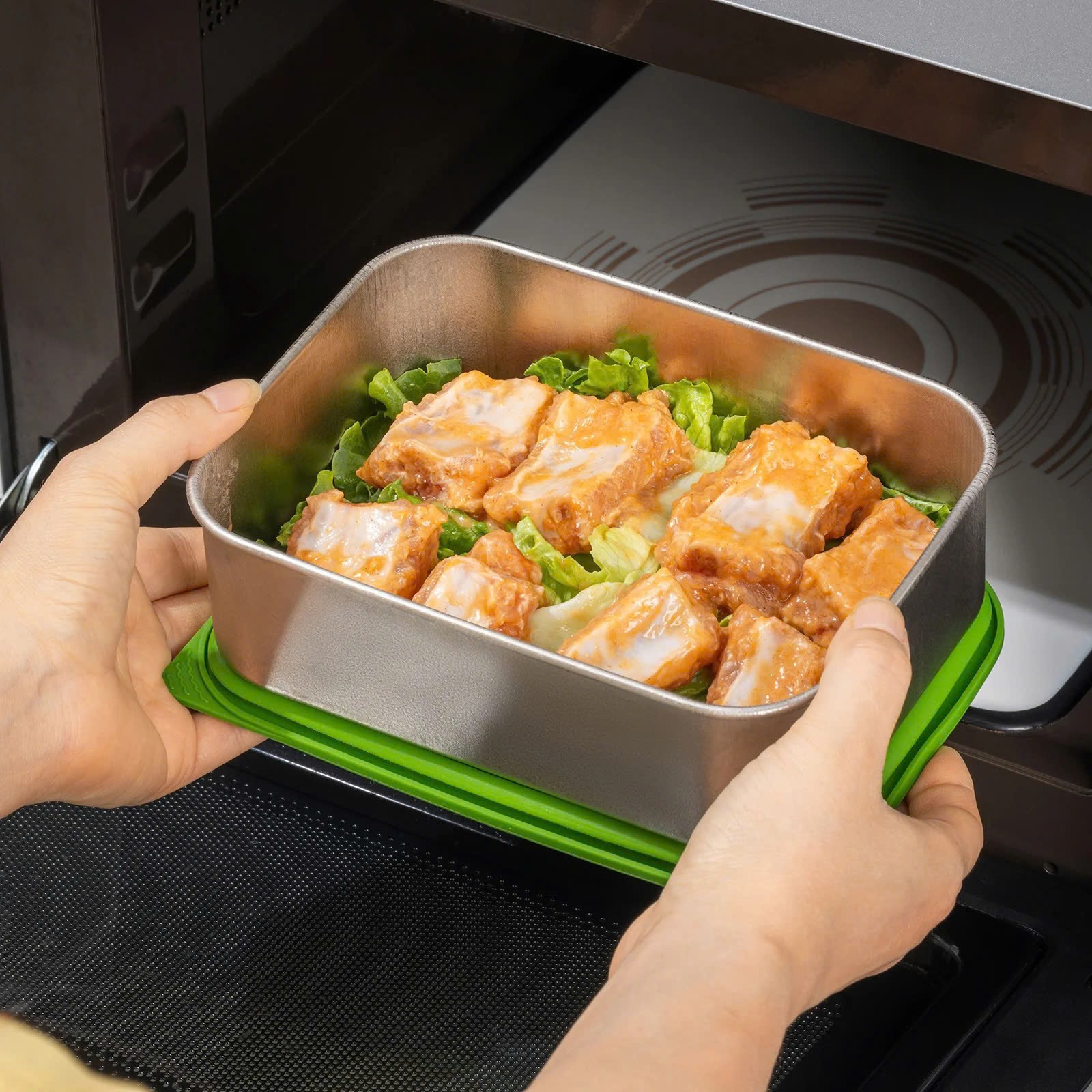 1. An toàn khi sử dụng trong lò vi sóng (đặt nắp dưới hộp trước khi cho vào lò vi sóng).