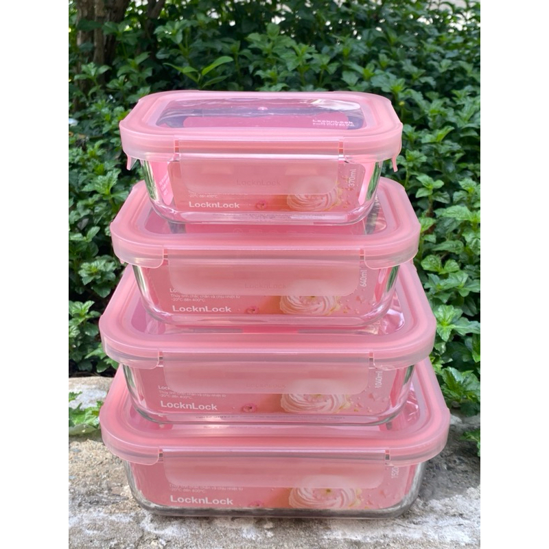 [LOCKnLOCK] Hộp Thủy Tinh Chịu Nhiệt Rose Với Nắp Màu Đỏ Hoa Anh Đào LLG402 -640ml