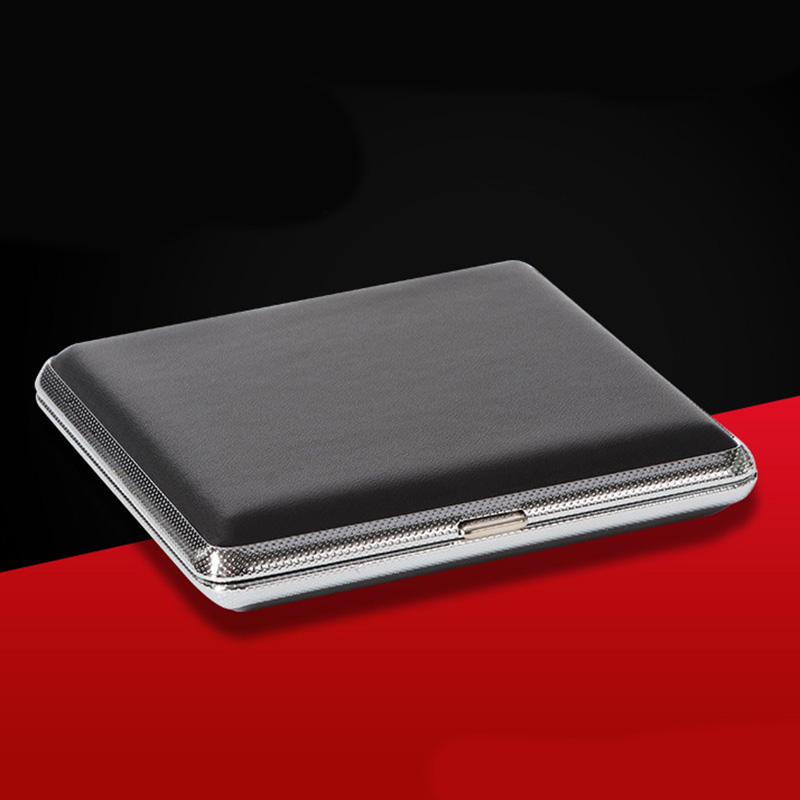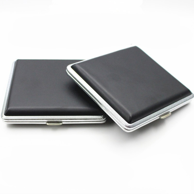 Hộp Đựng Thuốc 20 Điếu Lớn Ngắn Kẹp Kim Loại Bọc Da Đen
