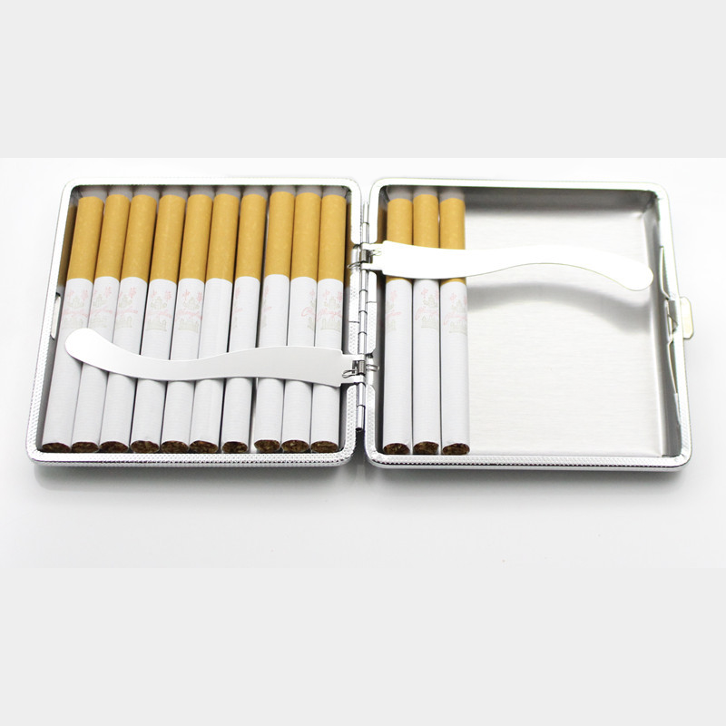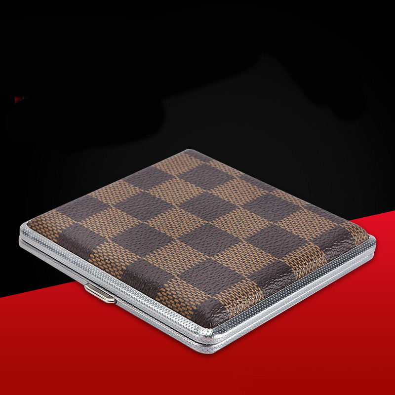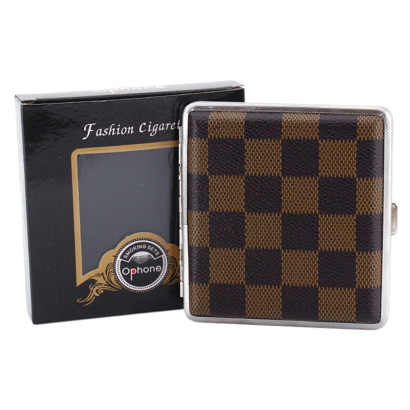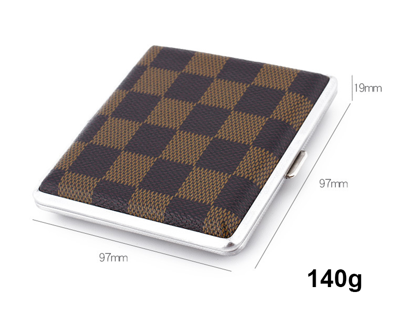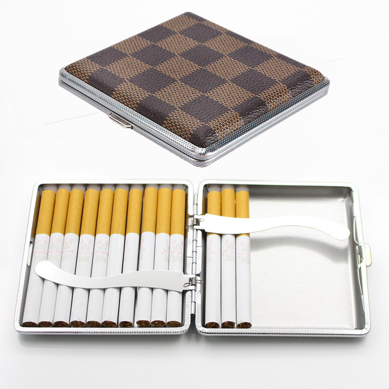 Hộp Đựng Thuốc 20 Điếu Lớn Ngắn Kẹp Kim Loại Bọc Da Caro