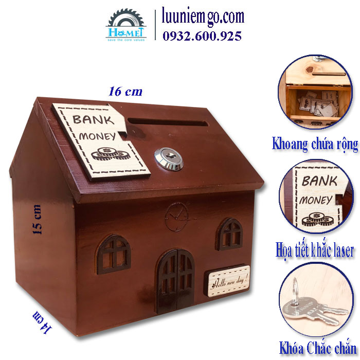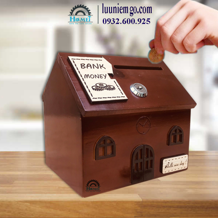 Hộp gỗ đựng tiền tiết kiệm, tạo thói quen quản lí tiền bạc, tiết kiệm cho bé
