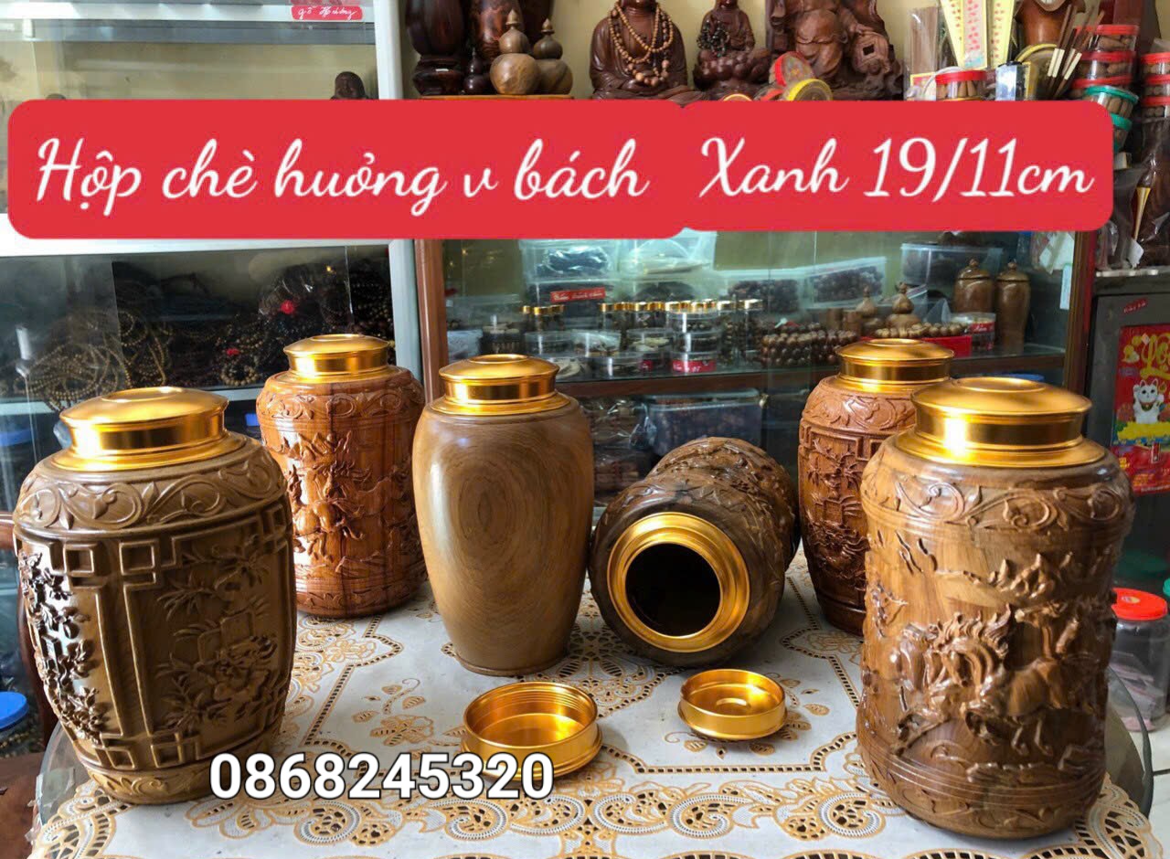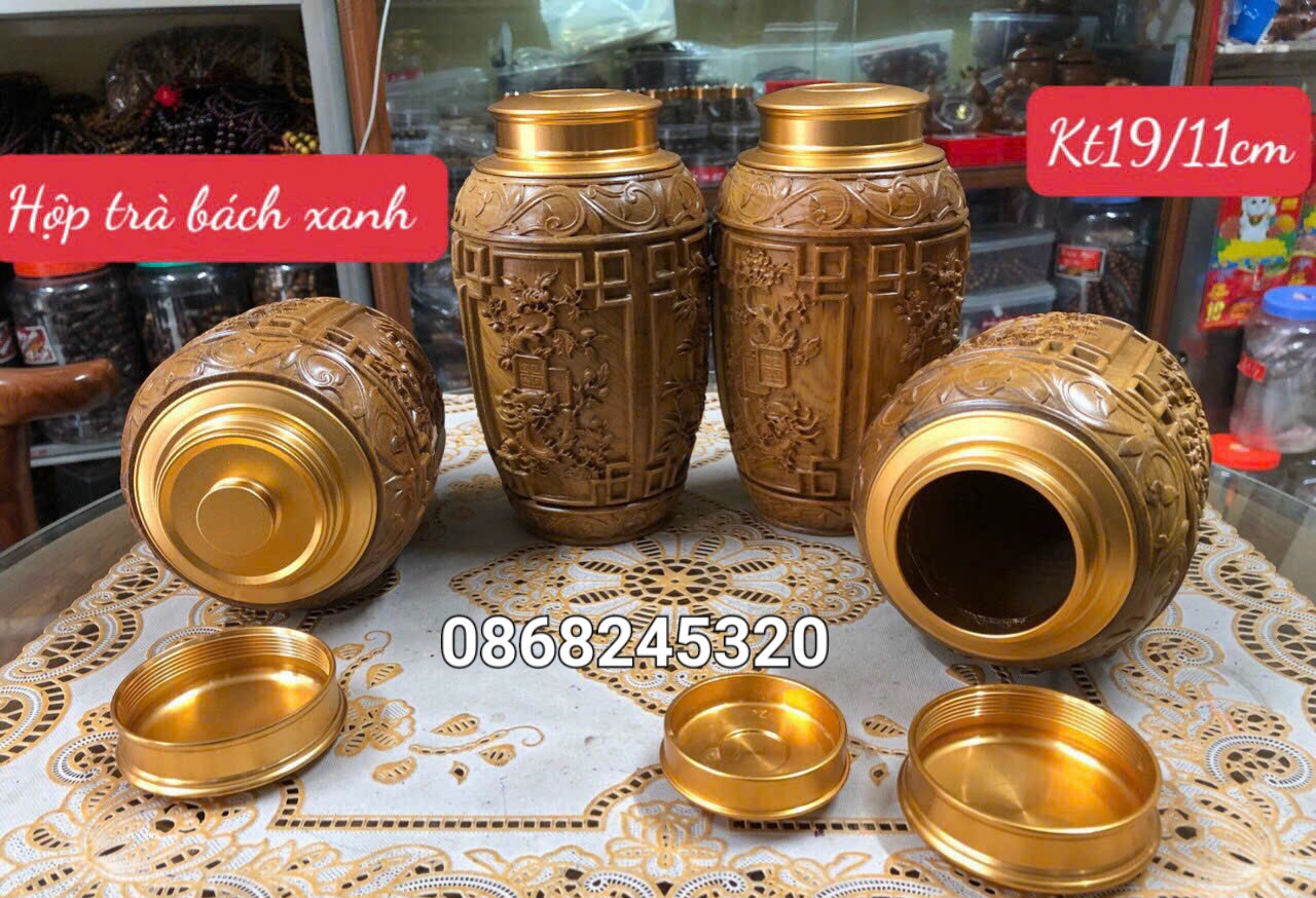 _ Hộp đựng trà ( chè ) được làm bằng chất liệu gỗ bách xanh liền khối tự nhiên 100%