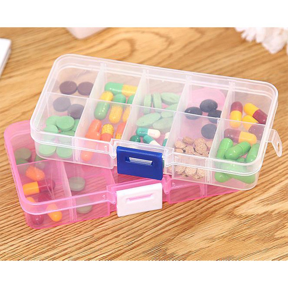 - Hộp 10 ngăn: Kích thước: 6.5 x 12.9 cm, cao 2,2 cm có nút đóng mở. Kích thước mỗi ô nhỏ: 3,2cm x 2,5cm